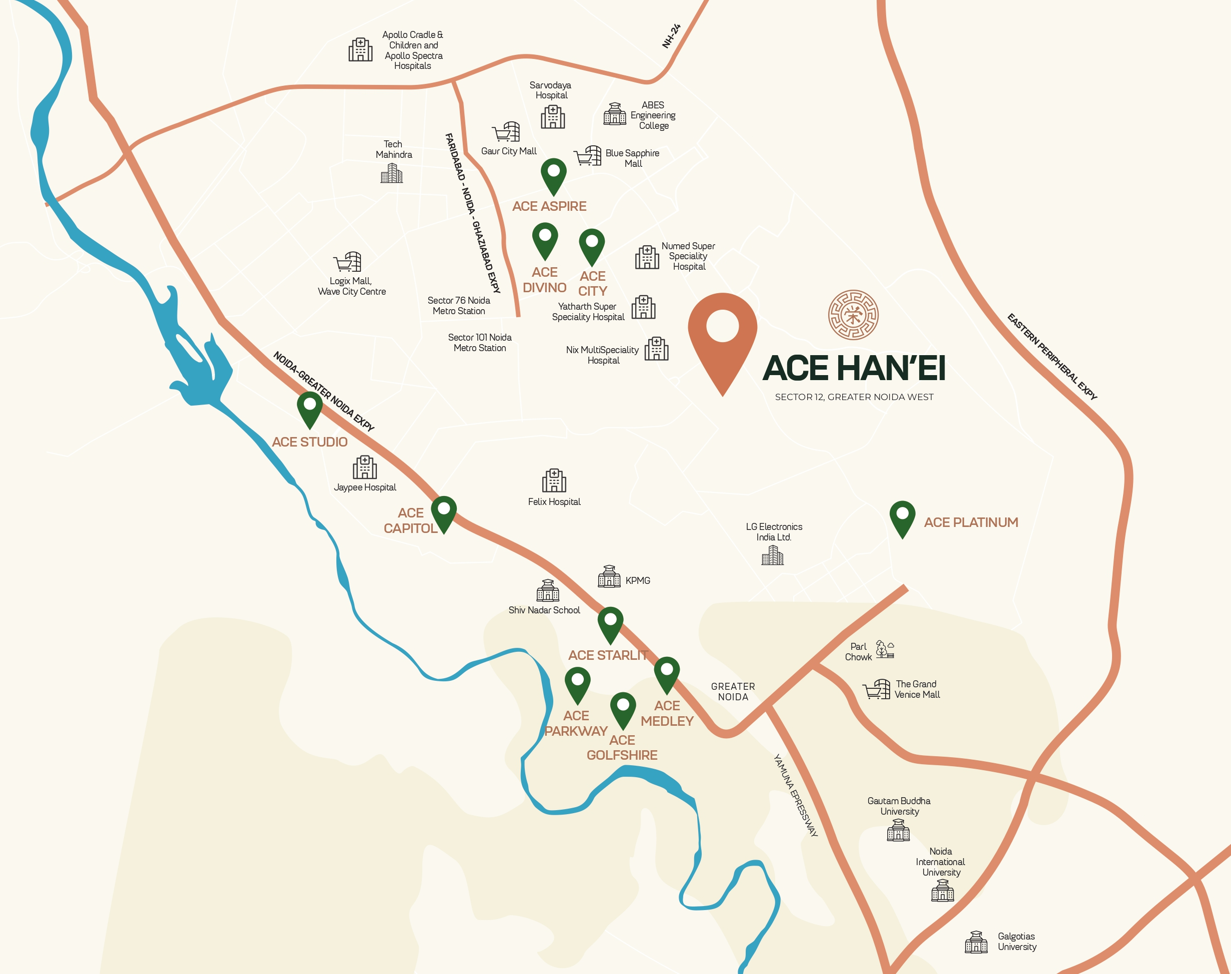 Indulge in the pinnacle of luxury living within our exquisite 3 & 4 BHK ultra-luxury apartments at ACE HAN'EI, meticulously crafted to surpass your every expectation. Nestled in the prestigious Sec-12 of Greater Noida West, these lavish abodes are a testament to sophisticated design and unparalleled craftsmanship..